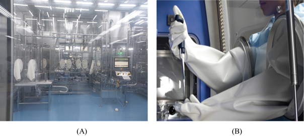 o Grau A: zona para operações de alto risco (ex: zona de envase, onde são feitas manipulações e conexões assépticas), normalmente em estação de trabalho com fluxo de ar unidirecional ou isolador.